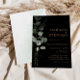 Ce faire-part de mariage à eucalyptus minimal et à forme noire est parfait pour compléter un mariage rustique. Le design présente un feuillage d'eucalyptus vert aquarelle dans un arrière - plan noir.