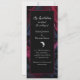 Ces invitations verticales de mariage sur stiletto dépeignent une bordure gothique et vampeuse de tissu satiné coulant en rouge et noir, et sont accentuées par un homme croissant dans la lune. Elégantes et modernes, ce sont de superbes cartes invitations pour un mariage de la mascarade à thème Halloween plein de mystique et d'allure.