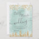 C'est le moment de célébrer votre thème mariage hiver merveilleux avec cette luxueuse parties scintillant dorée flocons de neige étincelants et la forêt de pins parties scintillant or sur un élégant arrière - plan métallique couleur bleu vert glacé festif, avec une typographie de police cool moderne.