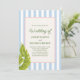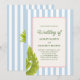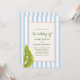 Célébrez votre jour spécial avec une ambiance tropicale rétro ludique ! Cette invitation de mariage présente un fond rayé bleu clair, des feuilles de palmier et un cadre bordé de corde avec du texte vert. Parfait pour les couples qui aiment l'élégance fantaisiste avec une touche d'île.