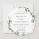Ce faire-part de mariage chic présente une belle couronne de verdure vert aquarelle et des détails dorés. Personnalisez-le avec vos détails facilement et rapidement, il vous suffit d'appuyer sur le bouton customiser pour réorganiser et formater le style et l'emplacement du texte.