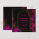 Elégant Faire-part de mariage noir carré avec impression et texte sur deux côtés. Doté d'une conception d'encre en or et rose avec une arche pour le texte rose chaud. Personnalisable - ajoutez vos propres détails et texte à l'avant et à l'arrière. Téléchargeable avec la possibilité de partager aussi en ligne. Fête de l'AMOUR.