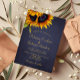 Elégant chic été ou mariage de automne élégant invitation modèle sur le tableau bleu marine de minuit sombre avec un beau bouquet de tournesols et faux script de calligraphie or. ++++++++++++++++++++++++++ L'invitation est adaptée aux mariages campagnards rustiques élégants d'été ou d'automne.