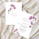 Invitation florale douce mariage Petite été conçue avec des grappes de fleurs dans des tons de violet doux, accentuée de bourgeons verts délicats. Le texte de l'avant comprend : Avec leurs familles, les noms complets de l'épouse et de la pièce, Demandez l'honneur de votre présence à leur Mariage, la date, l'heure, l'emplacement et l'adresse, avec la réception pour suivre note, sur un arrière - plan blanc. Le texte inverse comprend : Vos RSVP Détails sur un arrière - plan blanc avec un accent doux de fleurs violettes. Pour personnaliser, insérez simplement vos détails d'événement dans notre modèle facile, en remplaçant l'exemple de texte. N'oubliez pas de consulter l'ensemble de la collection Florale d'été Soft Purple Petite Mariage pour les cartes et accessoires correspondants. Cette invitation est disponible en version imprimée et en téléchargement.