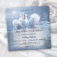 Faire-part de mariage romantique avec deux cygnes amoureux sur un lac ou un étang éclairé par le soleil. Belle pour un mariage à thème bleu, un parc ou une fête au bord du lac. Cette invitation a une carte RSVP correspondante.