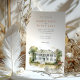 Annoncez votre mariage à l'élégance du Sud à l'aide de cette belle suite d'invitation, avec une illustration de l'aquarelle du musée historique Kaminski House Museum à Georgetown, Caroline du Sud. L'avant de l'invitation offre une vue pittoresque sur la majestueuse maison blanche, encadrée par des arbres verdoyants, et une touche de porte en brique rouge. La scène est rendue dans un style aquarelle doux et artistique, évoquant un sens de la grâce, de la tradition et de l'amour du Sud. Le revers, conçu pour "The Finer Details", poursuit le thème élégant avec le même emblématique Kaminski House Museum, permettant une présentation cohésive. La douce aquarelle apporte une touche romantique. Idéal pour un mariage sur le thème du Sud, une fête dans le jardin ou pour un couple à la recherche d'une esthétique classique et raffinée pour leur journée spéciale.
