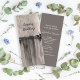 Invités Invitations à votre prochaine cérémonie de mariage détendue et rustique et réception avec le charmant Ranch Country Ranch du Rural Fence Post. Cet invitation nuptial occidental décontracté mais élégant présente une photo de style ferme noir et blanc pittoresque d'un poteau de clôture en bois patiné avec barbelé. Idéal pour une visite ou une idée de votre événement informel de fête de grange. Disponible sous forme d'invitation imprimée à l'envoi ou en téléchargement numérique pour un partage numériquement en ligne facile.