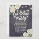 EAT Drink and Party Mariage Celebration / Bridal Shower Invitation Cartes Modèles - Elégante White Hydrangea Flowers et String Lights sur Vintage Navy Blue Floral Linen Arrière - plan. Un design parfait pour votre grand jour. Tous les styles de texte, couleurs, tailles peuvent être modifiés selon vos besoins !