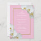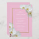 Invitation vos êtres chers pour célébrer votre mariage avec cette élégante et moderne faire-part de mariage personnalisée. De délicieuses fleurs d'orchidées blanches mettent magnifiquement en valeur vos noms, sur un fond rose sophistiqué encadré d'une subtile bordure dorée. Customisez avec tous vos détails mariages essentiels pour un faire-part intemporel.