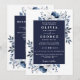 Cette invitation de mariage florale bleu marine élégante peut être personnalisée avec vos informations en typographie moderne avec le code QR de votre site web de mariage au verso. Conçue par Thisisnotme©