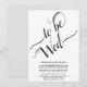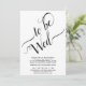 Cette belle invitation de mariage est à la fois simple et élégante. Le design noir et blanc présente une calligraphie fantaisiste indiquant "to be Wed" sur les 2/3 supérieurs de la toile avec un texte simple en dessous. Design moderne minimaliste.