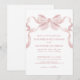 Faire-part de mariage De Bow Romantique Rose Vive. Ajoutez une touche fantaisiste et romantique à votre mariage de printemps ou d'été avec ce design charmant. Un arc d’aquarelle rose vif et doux avec des rubans fluides orne doucement le dessus, créant une sensation aérée et gracieuse, parfaite pour une fête inspirée du jardin. Les détails mariages sont magnifiquement écrits en écriture manuscrite rose assortie, combinant une élégance douce à une atmosphère rêveuse et fantaisiste. Cette invitation est idéale pour les mariages de jardin extérieur, les rassemblements intimes, ou les fêtes de printemps et d'été légères et joyeuses. Les tons doux et les détails délicats évoquent la chaleur et le romantisme, donnant un ton magique à votre journée spéciale. Entièrement personnalisable, cette conception vous permet de personnaliser le texte, les polices et la mise en page pour qu'il s'adapte à votre style de mariage unique. Disponible sous forme d'invitation imprimée ou de téléchargement numérique, ce design charmant et enchanteur laissera une impression durable à vos invités.