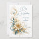 Invitation Mariage élégant Floral Bleu Fleurs blanches