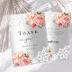 Un carte de remerciements moderne et élégant non photo. Un arrière - plan faux argenté. Décoré de roses roses roses rousses, fleurs florales et dentelle blanche. Sur le devant le texte : Merci Retour : Modèle pour Votre note de remerciement et les noms.