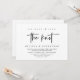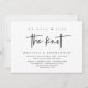 Carte d'invitation de mariage en fuite sur le thème du script noir moderne (nous avons noué le nœud). Elle est parfaite pour votre réception de mariage en fuite / fête de célébration post-mariage. Ajoutez vos détails dans une police / lettrage noir assorti.
