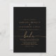 Cette faire-part de mariage espagnole classique en or noir est parfaite pour un mariage rustique. Le design sobre et élégant présente une typographie de script chic et sophistiquée en or.