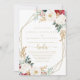 Cette faire-part de mariage espagnole aux motifs géométriques classiques et dorés est parfaite pour un mariage rustique. Le design se compose de fleurs blanches, bordeaux et dorées et de baies au feuillage vert disposées en bouquets élégants.