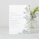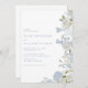 Célébrez votre jour spécial avec notre invitation de mariage enchanteresse dotée d'une bordure florale à l'aquarelle bleu poussiéreux doux, romantique et délicate. Ornée de superbes hortensias bleus, de delphiniums, de roses blanches et de verdure, cette invitation dégage de l'élégance et du charme. La police bleu poussiéreux minimaliste intemporelle ajoute une touche de sophistication, parfaite pour tout thème ou style de mariage. Définissez le ton de votre mariage de rêve avec cette invitation exquise qui enchantera vos invités et créera des souvenirs durables de votre histoire d'amour.