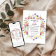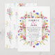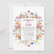 Partagez votre journée spéciale avec ce faire-part de mariage fleur sauvage dynamique. Le design se compose d'un ensemble coloré de fleurs peintes à la main encadrant vos détails mariages dans une disposition rectangulaire moderne. Idéal pour les fêtes de jardin, les fêtes de saumons ou les mariages de la campagne rustique. Personnalisez avec vos noms, date, lieu et plus pour un invitation unique.