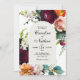Un choix romantique moderne dans les invitations de mariage, ce design présente des couleurs riches de rouge bordeaux, orange rustique, rose rousse et feuilles verts turquoises dans une belle bordure fleurie sur un cadre voûté branché autour de votre texte. Le fond de l'invitation est assorti à un bouquet floral qui fait une invitation unique de charme. Ces couleurs sont souvent utilisées en mariage du milieu de l'été à l'automne et pendant les mois d'hiver. Personnalisez le modèle de texte avec les détails de votre mariage. D'autres produits mariages correspondants sont disponibles pour coordonner cette invitation.