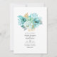 Faire-part de mariage floral à la menthe pastel orné d'accents dorés personnalisables selon vos spécificités.
