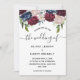 Cartes d'invitation de mariage floral aquarelle élégantes et chic avec de belles fleurs rustiques de campagne en rose blush, bordeaux et bleu marine. Le dos de la carte est en bleu poussiéreux moderne. Ajoutez facilement vos détails de mariage personnalisés.