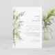 Cette élégante invitation au mariage présente un arrangement fleuri de fleurs blanches et de verdure sur un arrière - plan de lin blanc immaculé. En utilisant la typographie sans serif et des notes subtiles de calligraphie manuscrite, ce design est à la fois moderne et classique.