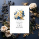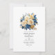 Faire-part de mariage floral bleu et or. Idéal pour un thème ou un mariage de jardin. Le code QR au verso se dirige vers votre site mariage où les gens peuvent en savoir plus et rsvp