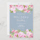 Doté de jolies guirlandes roses encadrant vos détails mariages personnalisés dans un texte élégant sur un arrière - plan bleu poussiéreux moderne. Conçu par Thisisnotme©