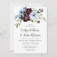 Un design élégant avec aquarelle de fleurs bordeaux et bleu poussiéreux, Vous pouvez personnaliser le libellé, la taille du texte, les couleurs et la police sur cette invitation de mariage.