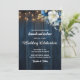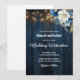 Une élégante invitation de mariage avec calligraphie élégante complétée par un magnifique bois bleu, des lampes à cordes de jardin et un bleu blanc floral avec parties scintillant d'or. Vous pouvez personnaliser cette carte avec les détails de votre Mariage.