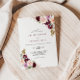 Cette faire-part de mariage fleurie bordeaux vert est parfaite pour un mariage rustique. Le design se compose d'élégants bouquets de fleurs dessinés à la main, verts, rousses, violets, rouges et bordeaux, inspirant la beauté naturelle.