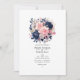 Marine et faire-part de mariage floral roux. Le code QR au verso dirige vers votre site mariage où les gens peuvent en savoir plus et rsvp.