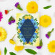 Collection mariage citron soleil avec fleurs sauvages bleus et roses avec verdure botanique