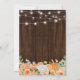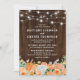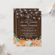 Avec une invitation de mariage country fall présentant un fond en bois rustique, des guirlandes lumineuses de jardin, des fleurs aquarelles élégantes de couleur orange et blanche d'automne, et un modèle de célébration de mariage facile à personnaliser, vous pouvez créer le jour de mariage parfait. Rendez votre journée de mariage spéciale et mémorable en ajoutant une atmosphère d'automne unique à votre mariage. Préparez-vous à célébrer votre journée entourés de la beauté de la nature.