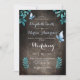 Rustique aquarelle bleu papillon floral mariage Design dispose d'un arrière - plan en bois, aquarelle fleurie feuillage mixte vert et branches dans différentes nuances de verts et de bleus avec des papillons roses.