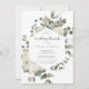 Cette invitation au brunch mariage à fleurs hivernales est parfaite pour un brunch de mariage élégant. Le design rustique simple présente des fleurs blanches avec des feuilles d'eucalyptus et une végétation hivernale, dans un esprit champêtre moderne.