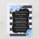Cartons d'invitation de mariage floral d'hydrangea bleu rayé marine.