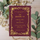 Pour un mariage de style Gatsby élégant. Arrière - plan bordeaux décoré d'un cadre de style art déco doré et fleuri. Personnalisez et ajoutez vos noms et détails.