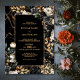 Invitation vos amis et proches à votre mariage pour assister et célébrer le début de votre voyage de toute votre vie avec cette invitation qui comporte un élégant spray à fleurs crème et noir avec des feuilles d'or sur un arrière - plan en marbre noir et or. Le texte personnalisable vous permet d'ajouter vos noms, votre date de mariage et les détails nécessaires de votre célébration. Une variété de types de papier et de styles d'angle sont disponibles pour vos invitations uniques, ainsi que l'option de téléchargement.