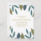 Ces invitations sont parfaites pour tout couple qui planifie une fête mariage moderne branchée. Le design présente des feuilles de feuillage dessinés à la main dans les tons bleu et vert sur un arrière - plan blanc propre et est fini avec un libellé simple à modifier. Le design simple peut être personnalisé pour convenir à votre événement spécial et sera le faire-part parfait pour toute fête à thème fleuri, y compris : douches nuptiales, fiançailles, wedding showers, fêtes d'anniversaire et bien plus encore.