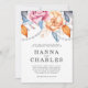 Invitation Mariage floral gris bleu foncé orange