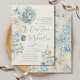 L'Aquarelle Bleue Dusty Romantique Floral Wedding Invitations présente des fleurs de céleste bleu poussiéreux et de delphinium avec une végétation d'eucalyptus agrémentée de papillons. Ajoutez votre texte personnalisé dans un élégant script de calligraphie moderne. Conçu pour vous par Evco Studio www.zazzle.com/store/evcostudio