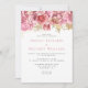 Cette faire-part de mariage romantique à fleurs est entourée d'une bordure supérieure fleurie rose et or. Les noms du couple apparaissent dans la police serif rose classique, avec le texte restant dans sans serif, sur un arrière - plan blanc. Le dos de la carte est une nuance coordonnée de rose solide.