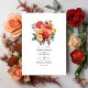 Faire-part de mariage florale rouge, orange et sauge. Idéal pour un thème ou un mariage de jardin. Le code QR au verso dirige vers votre site mariage où les gens peuvent en savoir plus et rsvp.