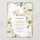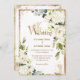 Superbe spray floral botanique blanc d'hydrangées et de roses aux accents de verdure, d'eucalyptus et d'or vintage. C'est une si belle invitation. Beau et parfait pour toute saison.