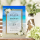 Invitations de mariage à la plage tropicale avec une destination estivale rivage océan, un cadre d'or élégant, des fleurs d'aquarelle simples, et un modèle mariage moderne facile à personnaliser.