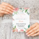 Ce faire-part de mariage espagnol tropical moderne et rose vif est parfait pour un mariage de destination. Le design est joliment peint à la main, blanc, rose, des fleurs vertes aux feuilles verts, représentant grâce et élégance.