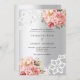 Pour une mariage élégante et romantique. Un arrière - plan à l'aspect faux argent décoré de fleurs d'or rose et rose, de dentelle rose et blanche. Personnalisez et ajoutez vos noms et détails.