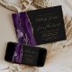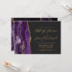 Le bord gauche de cette élégante faire-part de mariage moderne est orné d'une bordure d'aquarelle violette ornée d'une parties scintillant en faux or. Le texte personnalisable combine écriture manuscrite couleur or, cuivre et polices italiques sur un arrière - plan gris fusain foncé. L'envers est assorti d'une agate violette et dorée.